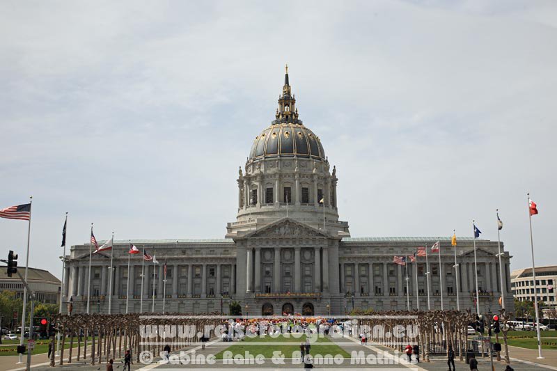 San Francisco (englische Aussprache [], deutsch auch San Franzisko[4]), offiziell City and County of San Francisco (Stadt und Kreis San Francisco), ist eine Stadt in der Metropolregion San Francisco Bay Area im US-Bundesstaat Kalifornien an der Westküste der Vereinigten Staaten am Pazifischen Ozean. Mit 873.965 Einwohnern (Volkszählung 2020)[5] ist sie die viertgrößte Stadt Kaliforniens. Im globalen Vergleich gilt sie neben ähnlich großen Städten wie etwa Frankfurt am Main oder Amsterdam als mittelgroße Weltstadt. Der Name der Stadt ist spanischen Ursprungs. San Francisco ist nach dem Heiligen Franziskus, also Franz von Assisi, benannt. Die Großstadt liegt an der nördlichen Spitze der San-Francisco-Halbinsel, welche die Bucht von San Francisco südwestlich abschließt. Das Stadtgebiet, welches deckungsgleich mit dem gleichnamigen County ist (offizielle Eigenbezeichnung der Stadt: City and County of San Francisco), besitzt einen näherungsweise quadratischen Umriss mit ca. 11 km Kantenlänge. Die Stadt wird im Westen vom Pazifik, im Norden vom Golden Gate und im Osten von der Bucht begrenzt. San Francisco ist auch berühmt für seine Hügel, die ab dreißig Metern Höhe Hill genannt werden; im gesamten Stadtgebiet gibt es derer 42. Im Zentrum des Stadtgebiets liegen die rund 275 m hohen Twin Peaks, die von den spanischen Missionaren auf Grund ihres Aussehens „Los Pechos de la Chola“, auf Deutsch „Die Brüste des Indianermädchens“, genannt wurden. Auf einem Rücken, der die Twin Peaks mit dem benachbarten Mount Sutro verbindet, befindet sich der fast 300 m hohe Sendeturm Sutro Tower, der das Stadtbild weithin sichtbar dominiert. San Francisco besitzt wie viele US-amerikanische Großstädte ein großräumig strikt rechtwinkliges Straßennetz, welches in der Regel ungeachtet der geografischen Verhältnisse angelegt wurde. Dies führt speziell in den älteren, nordöstlichen Stadtteilen zu teilweise sehr steilen Straßenabschnitten, zu deren komfortabler Überwindung Andrew Smith Hallidie um 1870 die Cable Cars entwickelte. Lediglich im Bereich um die höchsten der Hügel (Twin Peaks, Mount Davidson) wurden die Straßenverläufe der Geografie angepasst. San Francisco ist eine der bedeutendsten Hafenstädte an der Westküste Nordamerikas. Diese Bedeutung erlangte die Stadt durch den vom Meer geschützten Hafen (Naturhafen). In der Bucht von San Francisco liegen die bekannte, heute nur noch als Museum dienende Gefängnisinsel Alcatraz, Angel Island, Treasure Island, Yerba Buena Island und weitere kleine Inseln. Im Pazifik vor San Francisco liegen die Farallon-Inseln. Quelle: Wikipedia |